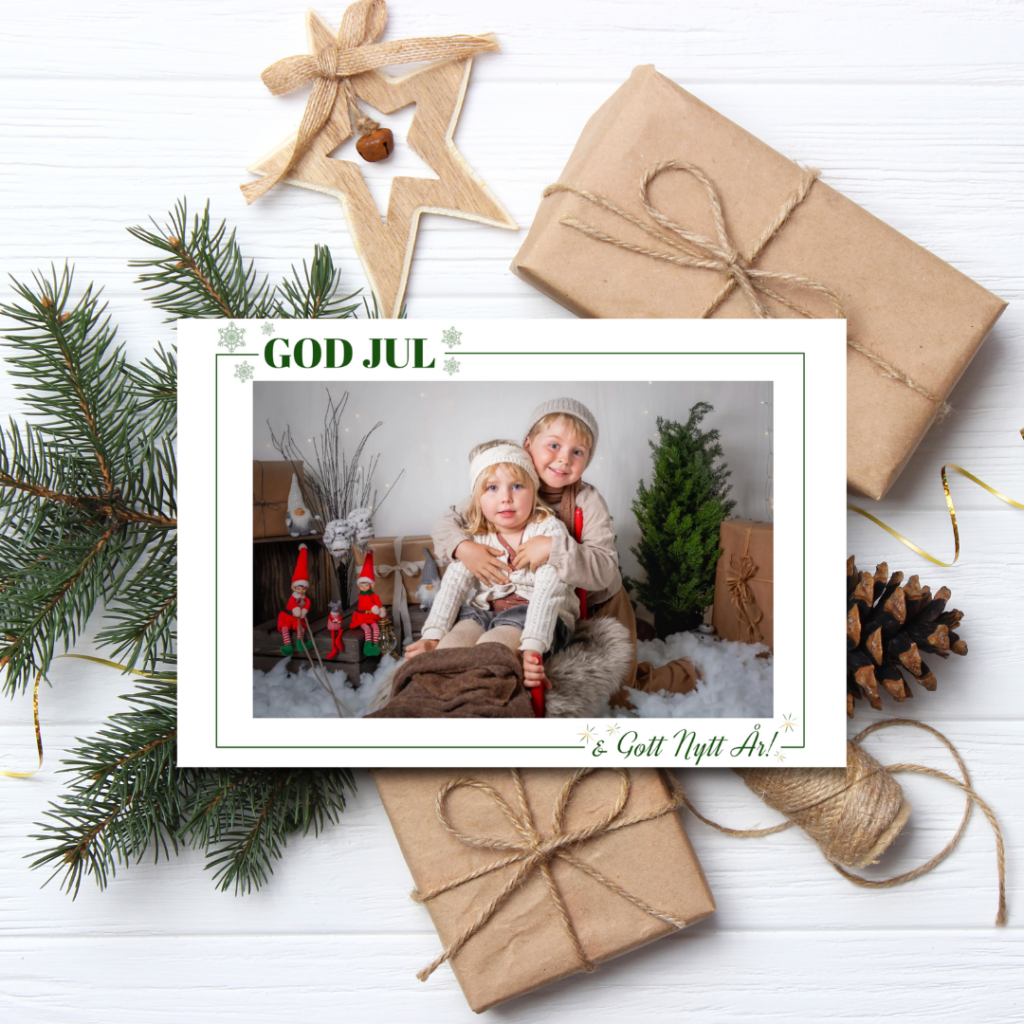 Tio julkort ingår i paketen Nisse-bus och Jul-Magi. Fina julkort som jag tar fram åt dig med din favoritbild som du väljer från ditt galleri. Vik-kort med kuvert. Julkortet kommer se ut som på bilden nedan.